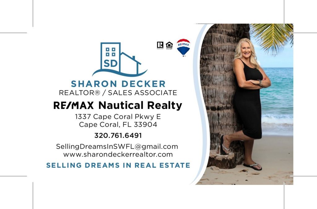 With more than three decades of experience in residential and commercial real estate, Sharon Decker is a trusted and accomplished real estate professional proudly serving Southwest Florida. As a top-performing agent with RE/MAX Nautical Realty in Florida and RE/MAX Results in Minnesota, Sharon brings a well-rounded, client-first approach to every transaction.